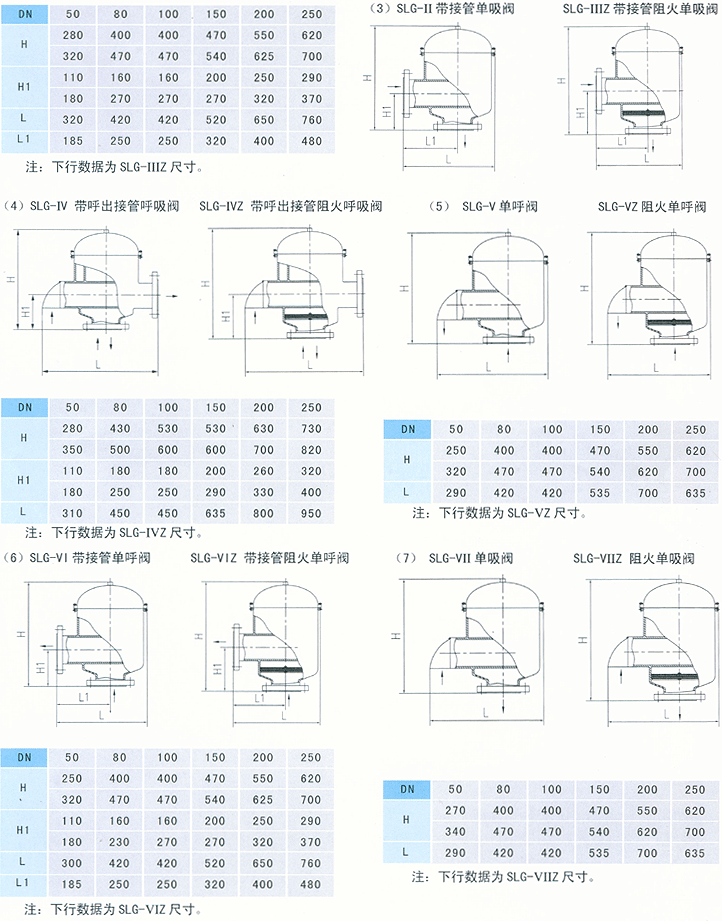 (1)SLG-I带双接呼吸阀 SLG-IZ带双接管阻火呼吸阀 (2)SLG-II带吸入接管呼吸阀